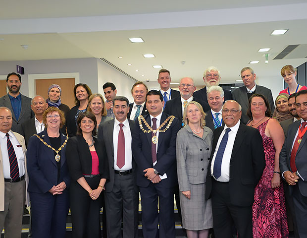 In the early evening Mayor Hadid arrived at his official Council reception at the Civic Centre, hosted by the Mayor of Hounslow, Cllr Sachin Gupta. Those welcoming him included the Leader of the Council, Cllr Jagdish Sharma; Deputy Leader and former Mayor, Cllr Colin Ellar; Deputy Mayor Cllr Corinna Smart; former Mayors Cllr Pritam Grewal and Cllr Paul Lynch; former and current cabinet members Cllr Ruth Cadbury, Cllr Shantanu Rajawat and Cllr Ajmer Grewal; Council Chief Executive Mary Harpley; Member of Parliament Seema Malhotra; and a host of other Councillors, heads of Council departments and senior Council officers as well as the Chair, Secretary, Treasurer and Vice-Chair of the Twinning Association.