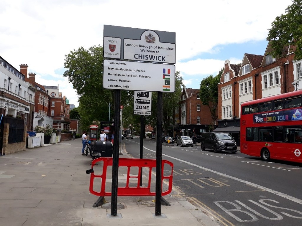 Following support from Mayor Cllr Tony Louki and Council Leader Cllr Steve Curran, signs listing all four of the Borough’s official overseas links have been installed in the following places – Richmond Road (Isleworth); Clockhouse Lane (Bedfont); Acton Lane (Chiswick); and Chiswick High Road (Chiswick). A further sign, at Ealing Road (Brentford), is to follow once utility works there conclude.